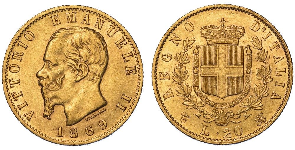 REGNO D'ITALIA. VITTORIO EMANUELE II DI SAVOIA, 1861-1878. 20 Lire 1869. Torino.