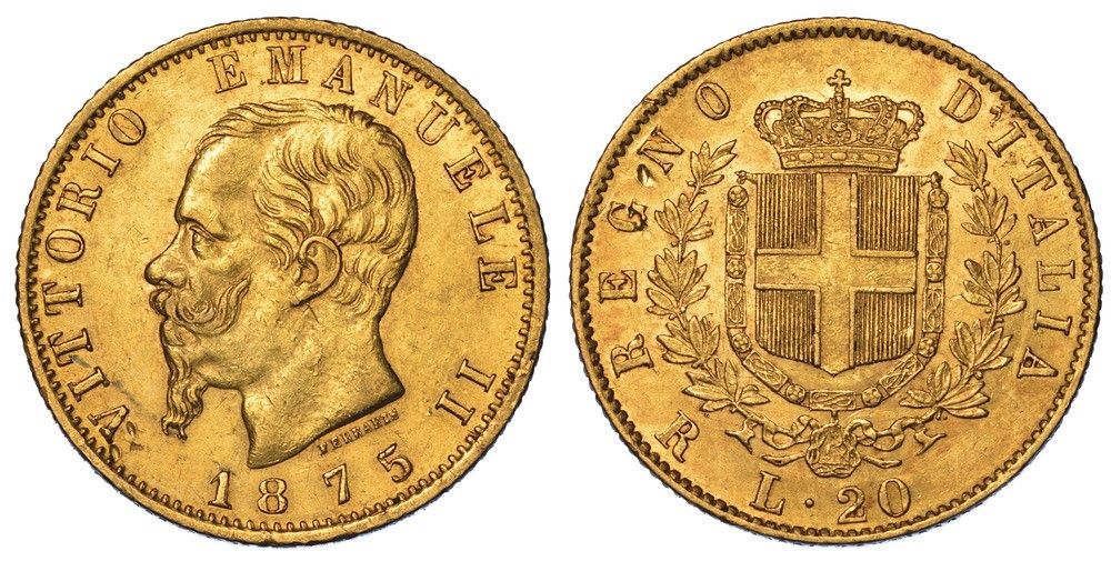 REGNO D'ITALIA. VITTORIO EMANUELE II DI SAVOIA, 1861-1878. 20 Lire 1875. Roma.