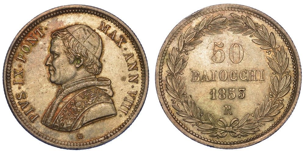 ROMA. PIO IX, 1846-1878. 50 Baiocchi 1853/A. VIII.