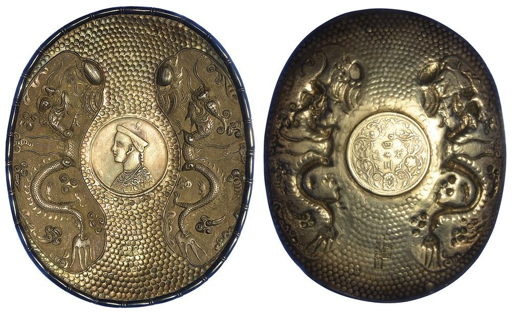 TIBET. Rupia (1902-1911) incastonata entro posacenere.