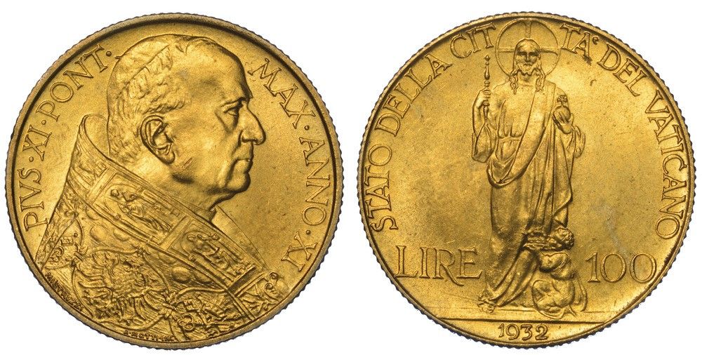 VATICANO. PIO XI, 1922-1939. 100 Lire 1932/A. XI.