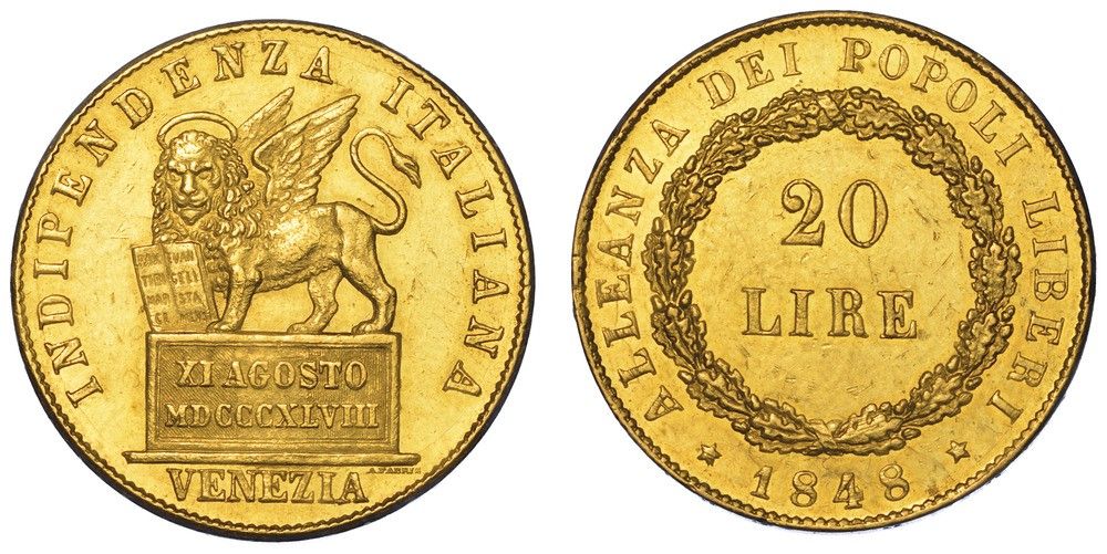 VENEZIA. GOVERNO PROVVISORIO DI VENEZIA, 1848-1849. 20 Lire 1848.