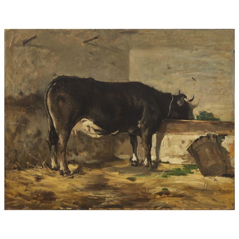 È uno dei pochi esempi conosciuti in cui Lega riprende il motivo dell’animale rustico tipico dei Macchiaioli, ma che appare inusitato nella sua tematica. Elencandolo nel catalogo della mostra di Modigliara, il Tinti ne dà una datazione incerta intorno all’80, quasi da lasciar pensare che in origine il quadro fosse mancante della data ’85 oggi ben evidente dopo la firma. Il carattere chiaramente autografo con cui questa si presenta porta a sottolineare però che non sarebbe questo l’unico caso in cui si rilevano delle imprecisioni nell’ordinamento cronologico dato dal critico.