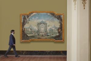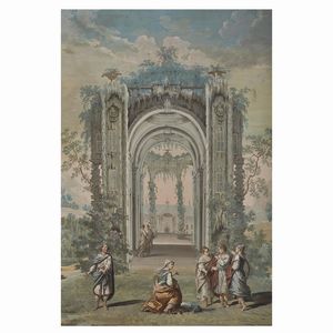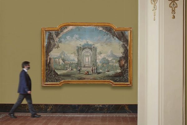Come nella coppia al numero precedente e le altre scene note dello stesso ciclo, abbiamo modo di apprezzare qui la straordinaria maestria con cui Carlo Lodi, come riportato dalle fonti a lui coeve, era in grado di affrontare commissioni importanti grazie alla padronanza del mestiere di paesista e scenografo e la collaborazione con figuristi di abilità sperimentata, in particolare Antonio Rossi fino al 1753 e poi Nicola Bertuzzi.