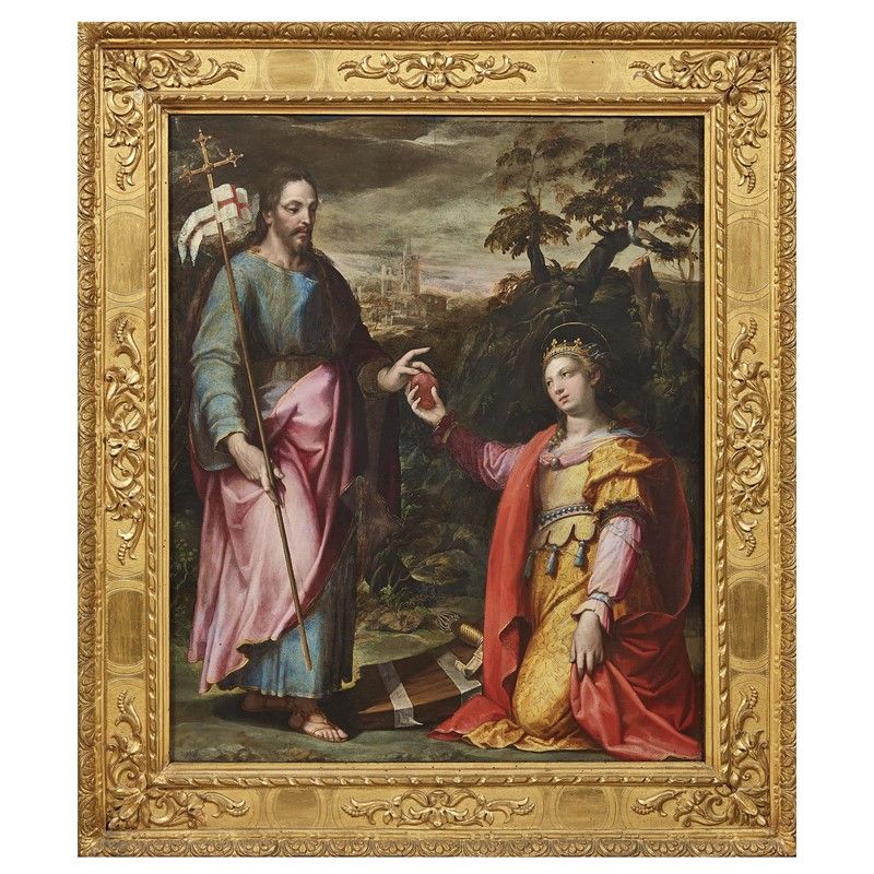 Splendido esempio della pittura bolognese del secondo Cinquecento, il dipinto qui offerto, notevole per invenzione come per condotta pittorica, è passato sul mercato artistico romano come opera di Giovanni Battista Ramenghi mentre era attribuito a Denijs Calvaert (1540-1619) nella raccolta di provenienza.