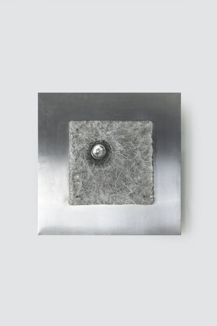 Struttura in metallo cromato e diffusore in vetro lavorato. Anni '70 h cm 12x60x60