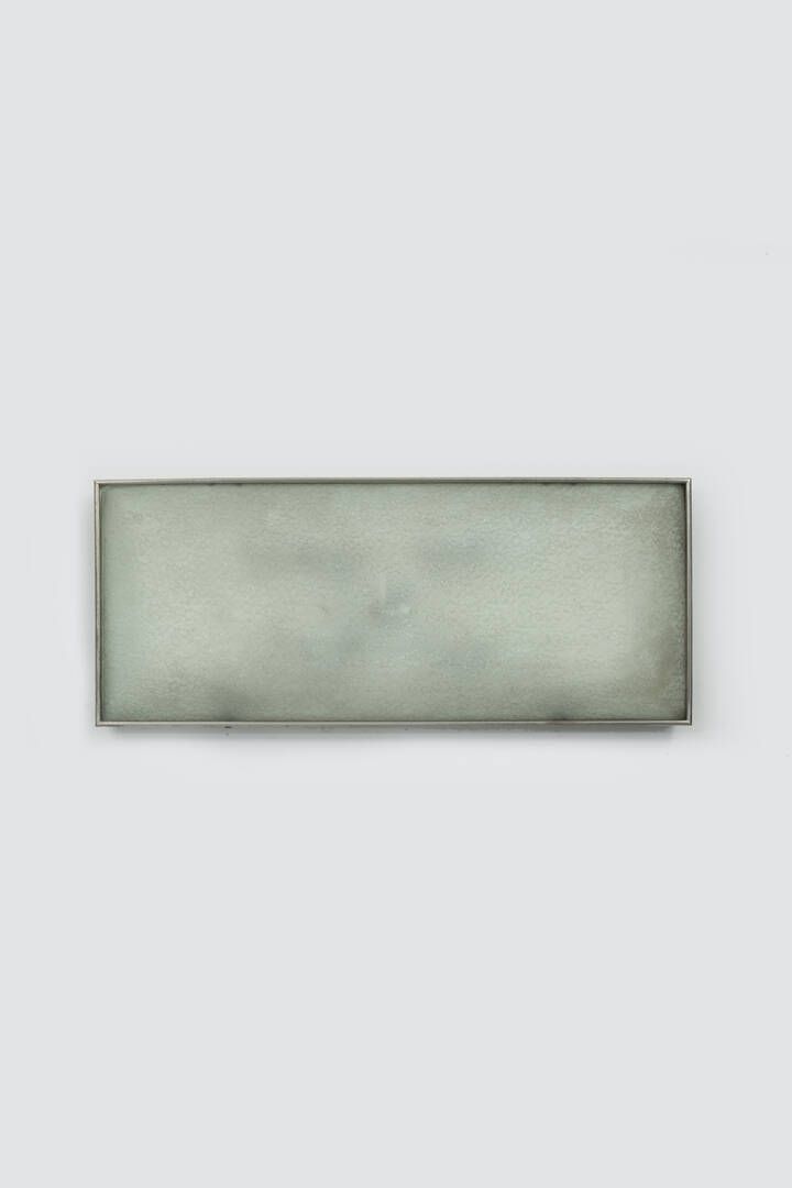 Lamierino verniciato metallo cromato vetro ghiacciato inciso apertura a cerniera con bottone a molla. Anni '50 h cm 9x68x28 Difetti