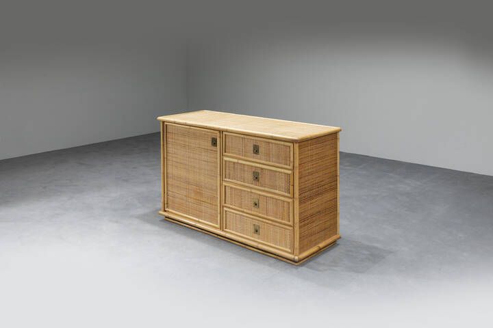 Cassettone in vimini e bambù con particolari in ottone. Marchio del produttore [..]