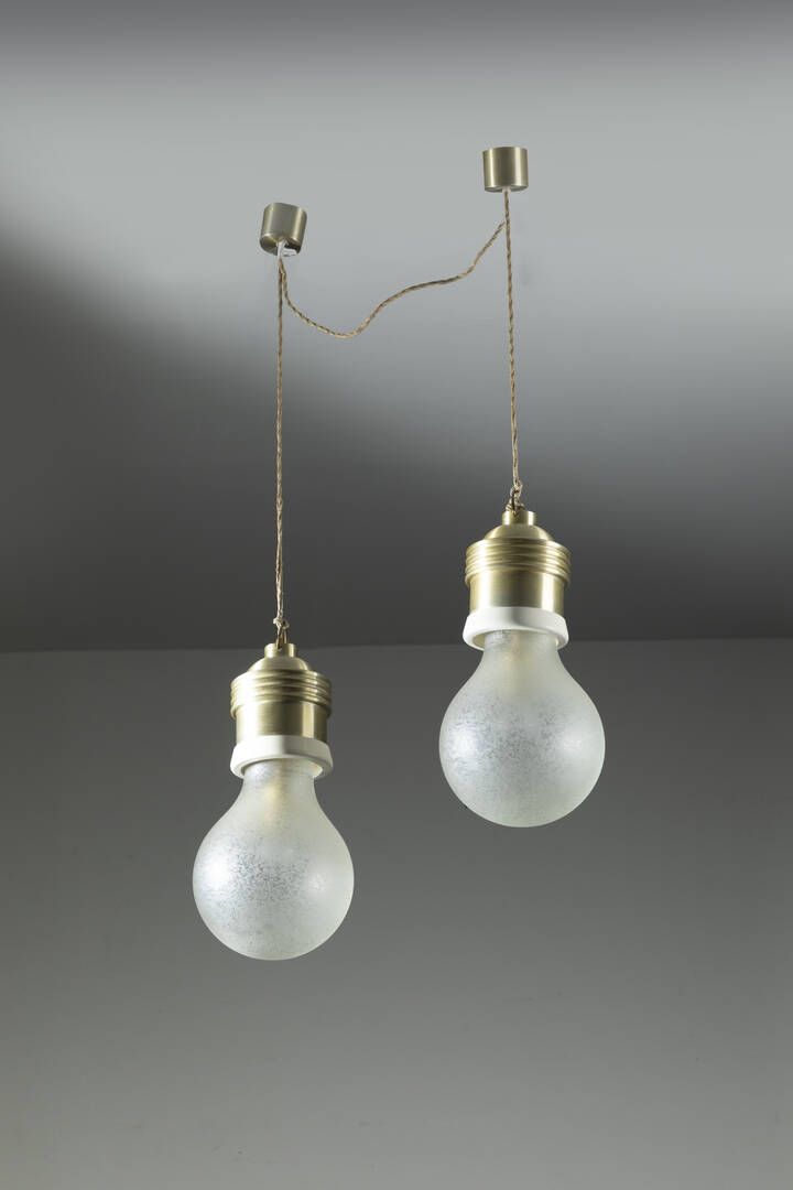 Ottone alluminio verniciato vetro soffiato satinato. Anni '60 h cm 115x60