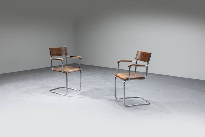 Tubolare metallico cromato legno e compensato curvato Etichetta del produttore Anni '50 cm 85x52x48 Difetti
