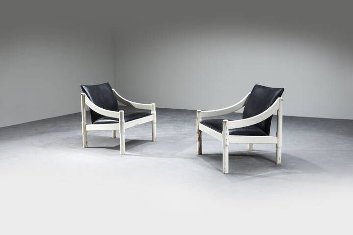 Legno laccato sedile e schienale imbottiti rivestiti in pelle. Prod. Cassina anni '60 cm 74x72x74 Bibl.: Catalogo Cassina 1967 pagine non numerate; Ottagono 30 (settembre 1973) p. 125; Pier Carlo Santini Gli anni del design italiano Ritratto di Cesare Cassina Electa Milano 1981 p. 111-114; Giampiero Bosoni Made Cassina Skira Milano 2008 p. 204 Difetti