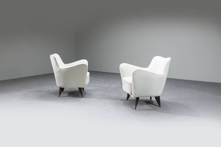 Struttura in legno imbottitura rivestita in velluto antimacchia. Prod. I.S.A anni '50 cm 80x83x72