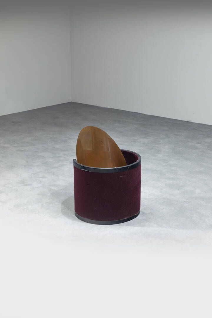 Portariviste in legno rivestito in tessuto e pelle ed elemento in rame. Anni '60 cm 53x44x40 Difetti