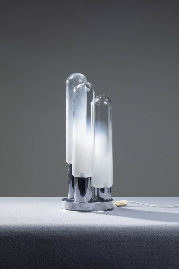 Metallo cromato ed elementi in vetro. Marchio del produttore Anni '70 h cm 59x22