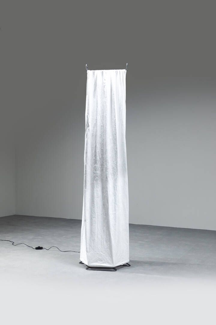 Struttura in metallo verniciato che sostiene un telo con funzione di paralume base in metallo. Prod. Flos anni '70 h cm 197x45 Piccoli difetti