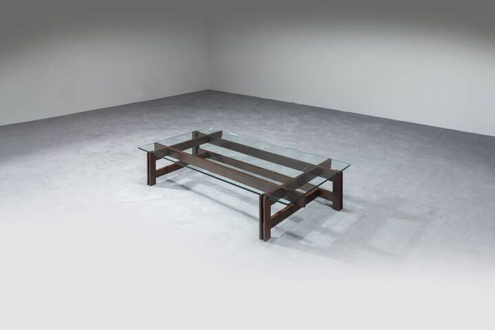 Legno e piano piano in vetro. Prod. Cassina anni '60 cm 24 5x140x74 5 Difetti