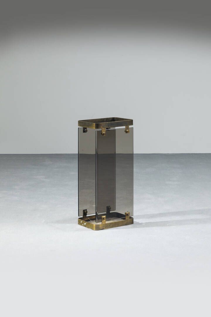 Portaombrelli in vetro fumè particolari in ottone. Anni '60 cm 56x18 5x26