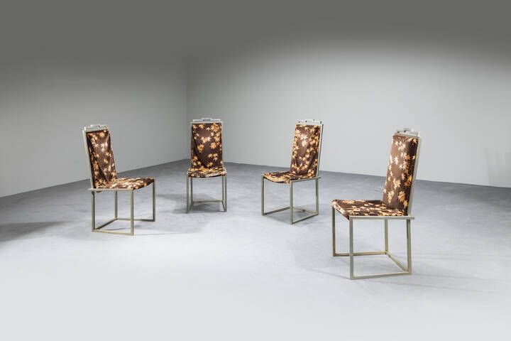 Quattro sedie con struttura metallo e imbottitura rivestita in tessuto. Anni '70 [..]