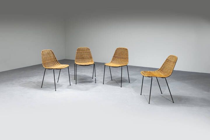 Struttura in metallo verniciato seduta in midollino. Anni '50 cm 79x46x55 Difetti