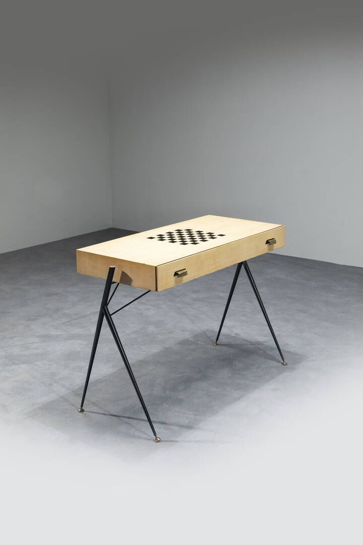 Struttura in metallo laccato piano in legno e particolari in ottone. Anni '50 cm 105x50x77