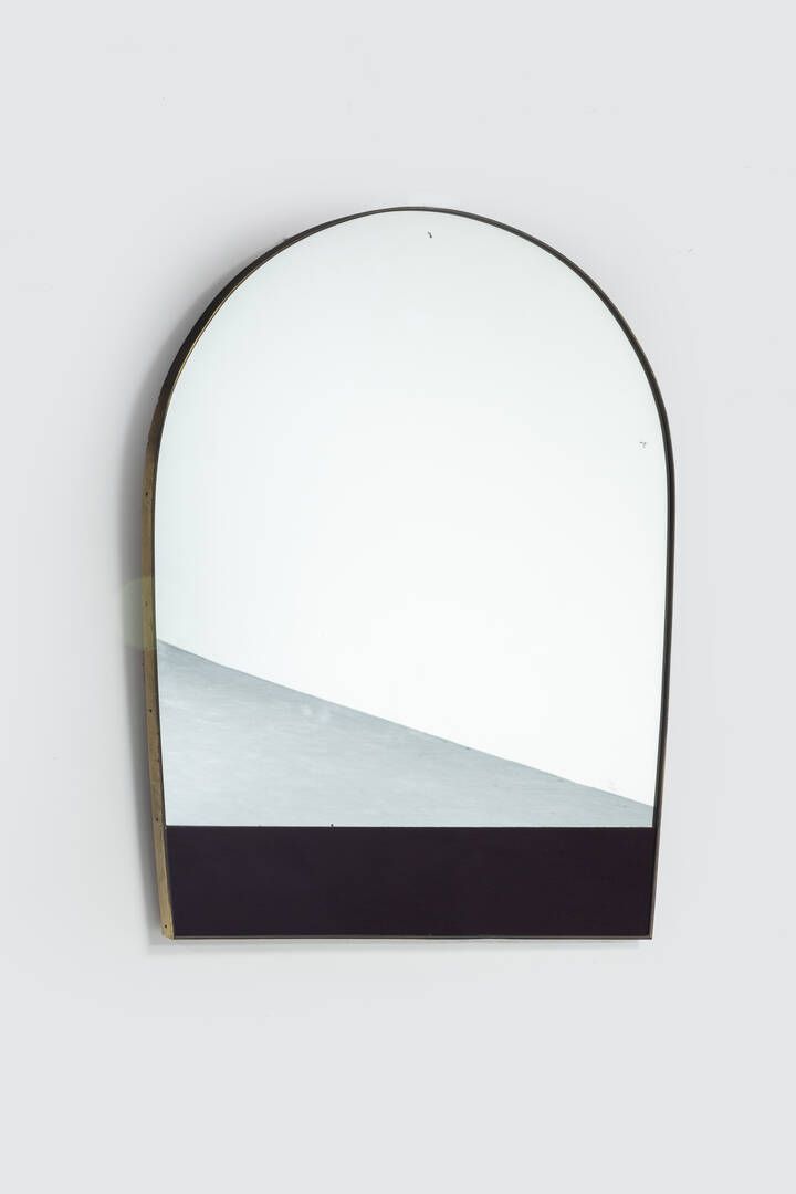 Specchio con bordo in ottone vetro colorato e specchiato. Anni '50 cm 133x99 D [..]