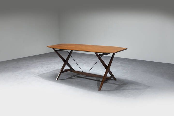 Struttura e piano in legno particolari in metallo laccato. Etichetta del produttore Prod. Poggi anni '50 cm 70x180x70 Bibl.: Giuliana Gramigna Repertorio del design italiano 1950-1980 Mondadori 1985 p.61 Difetti