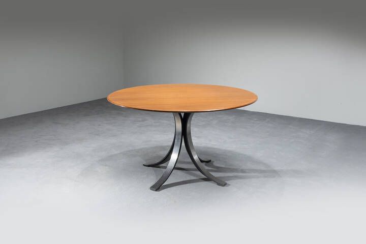 Struttura in metallo satinato e piano in legno. Prod. Tecno anni '60 cm 72 5x130x130