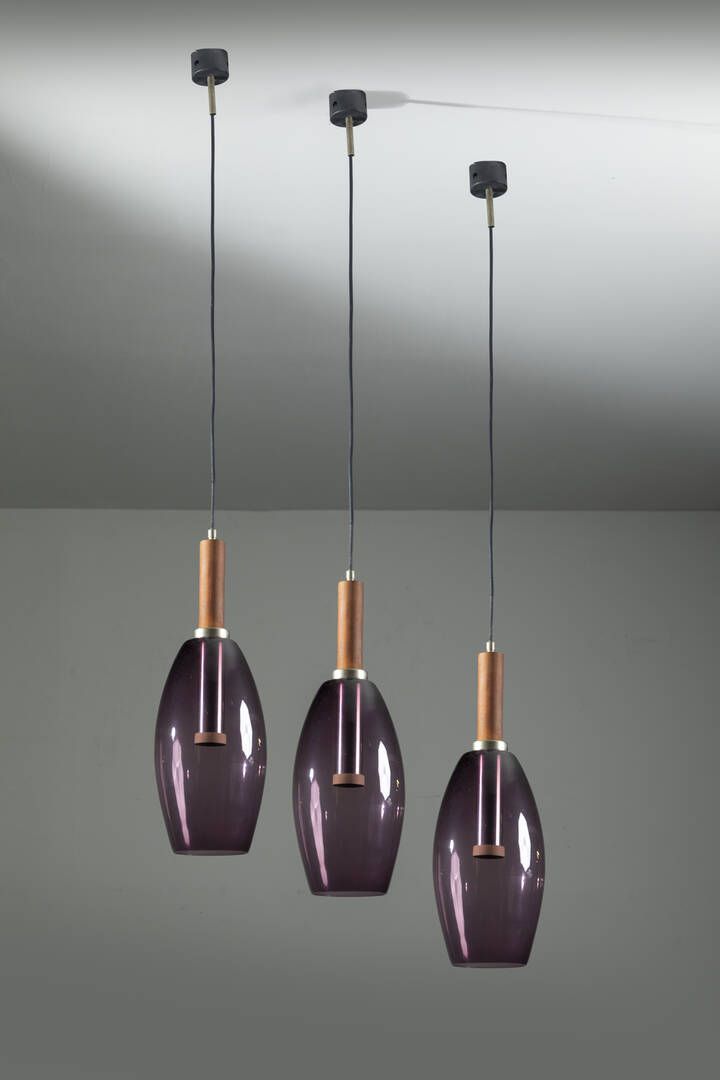Struttura in legno diffusori in vetro colorato e particolari in metallo cromato. Anni '70 h cm 53x18
