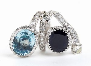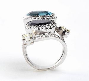 Anello contrarier in oro con zaffiro, acquamarina e diamanti