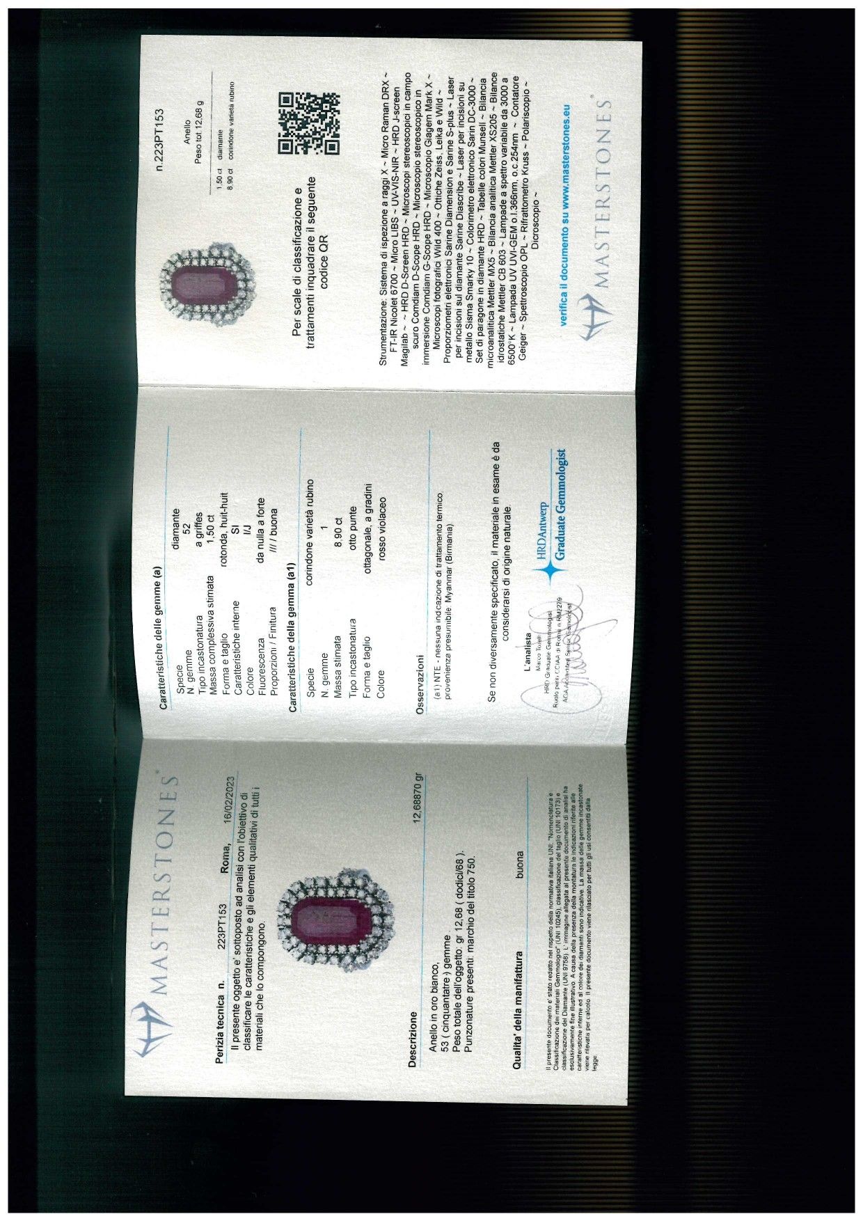 N. 01 corindone varietà rubino, forma ottagonale, taglio a gradini, circa 8.90 ct. Provenienza geografica: Myanmar (Birmania). Assenza di trattamento termico.