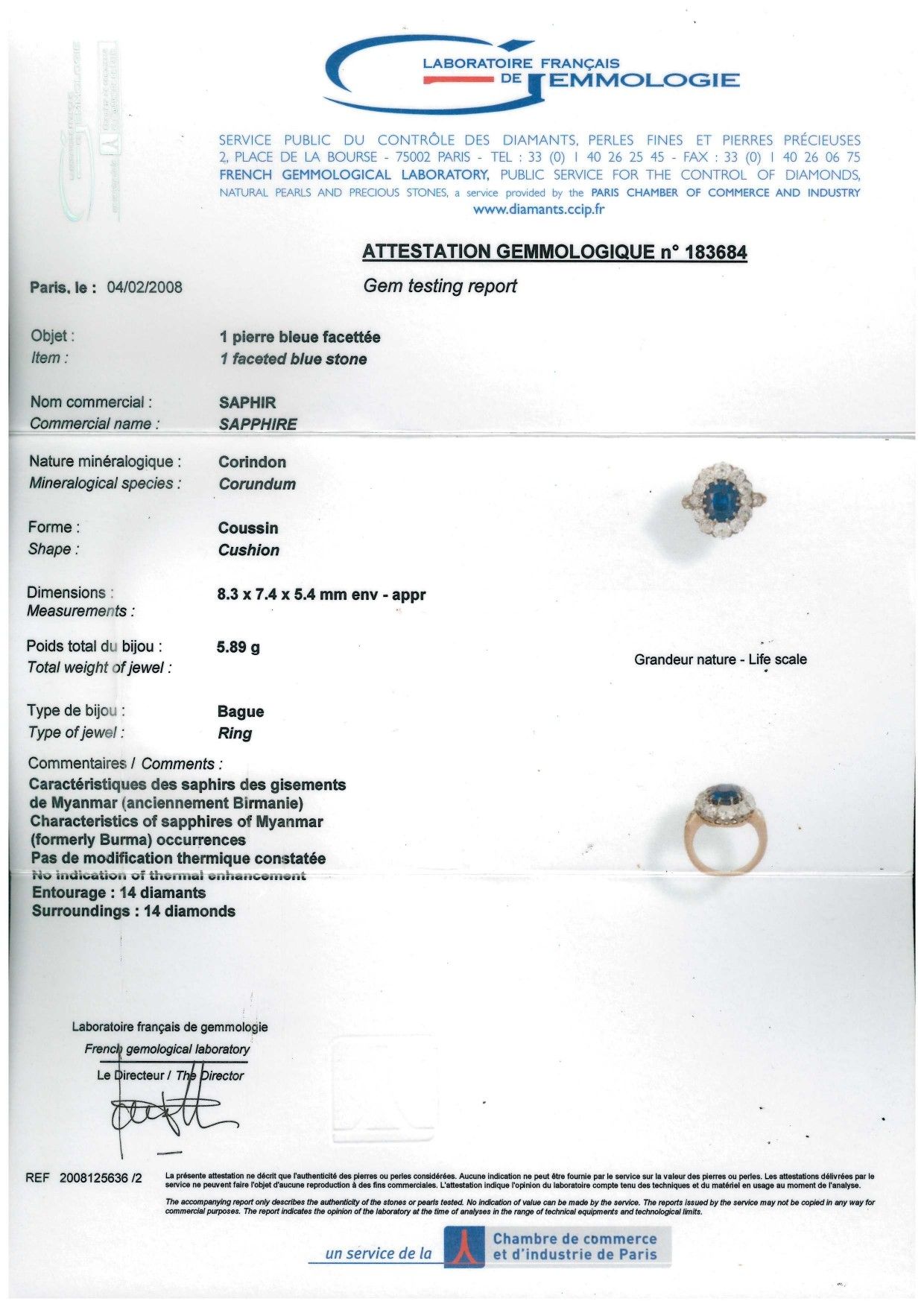 Accompagnato da certificato gemmologico di Laboratoire Français de gemmologie.