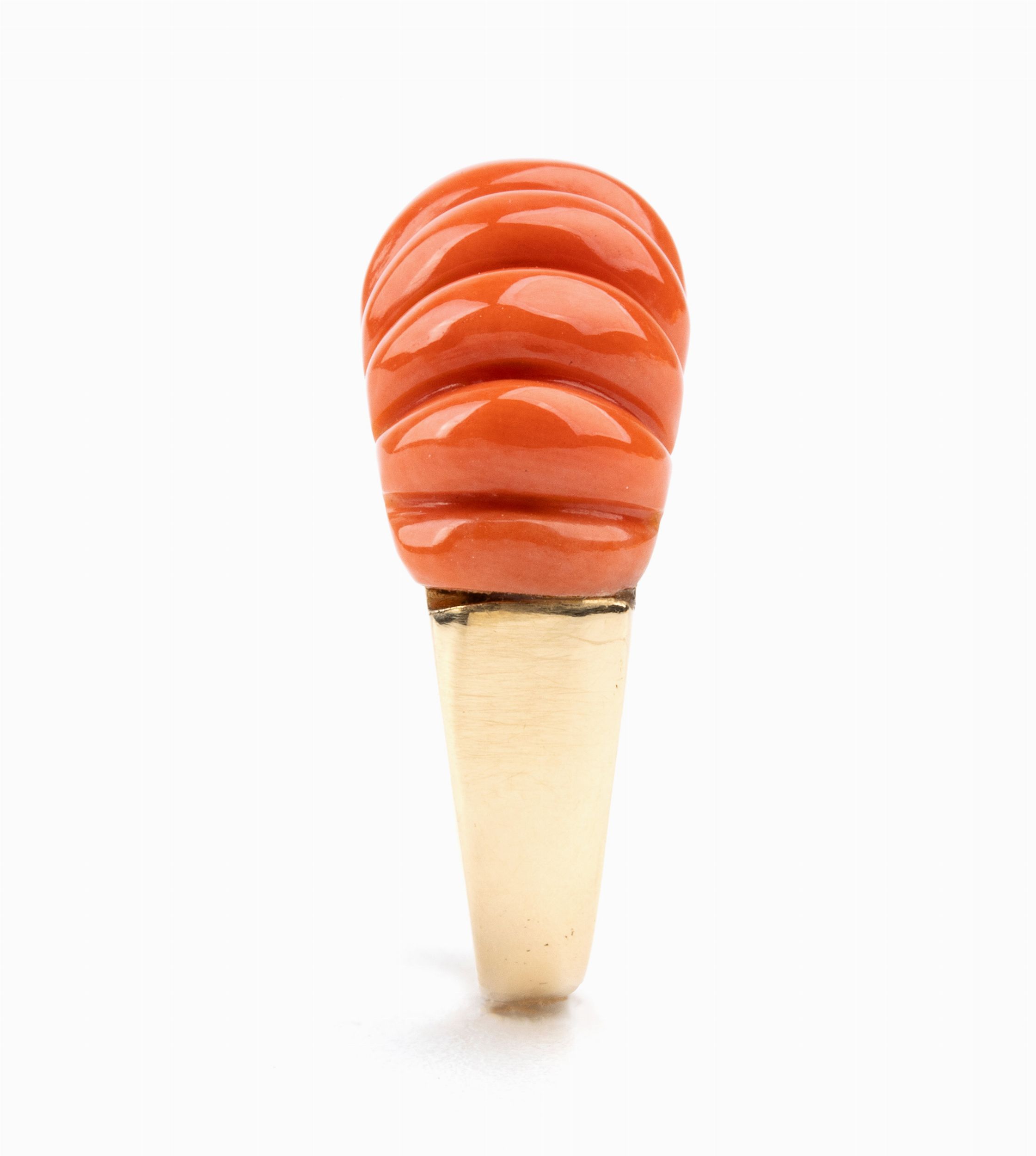 modellato come una fascia, con inserto in corallo cerasuolo (corallium elatius) inciso baccellato.