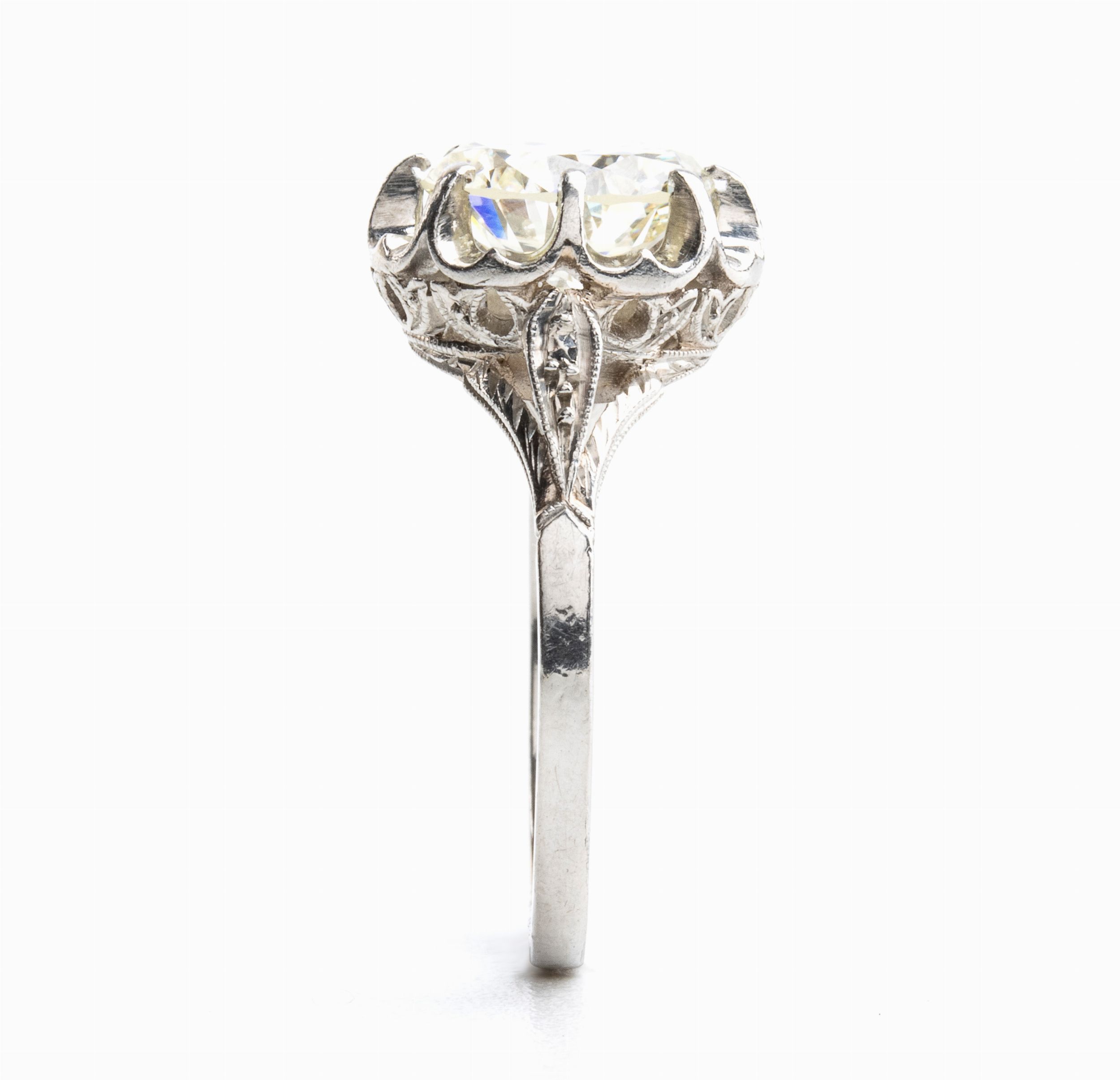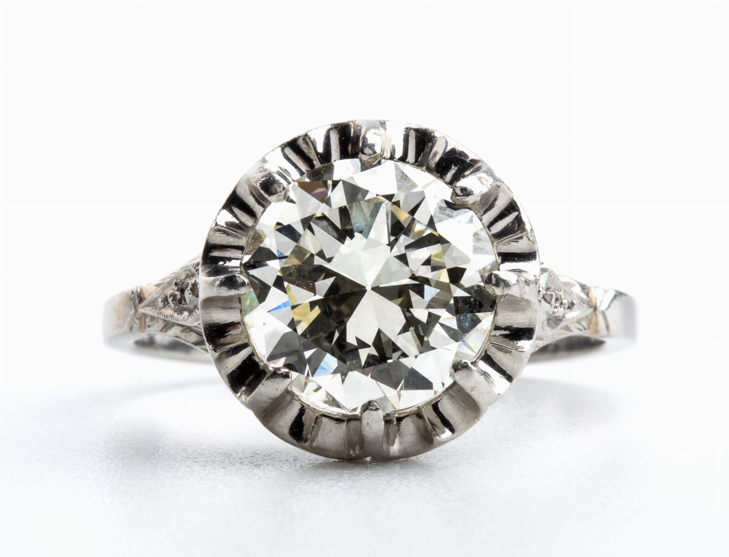 con montatura a motivo floreale.N. 01 diamante di forma rotonda, taglio brillante, circa 2.20 ct; L-M; VS-SI.Misura IT 16 - Misura USA 7 1/2. Peso 5,3 gr.