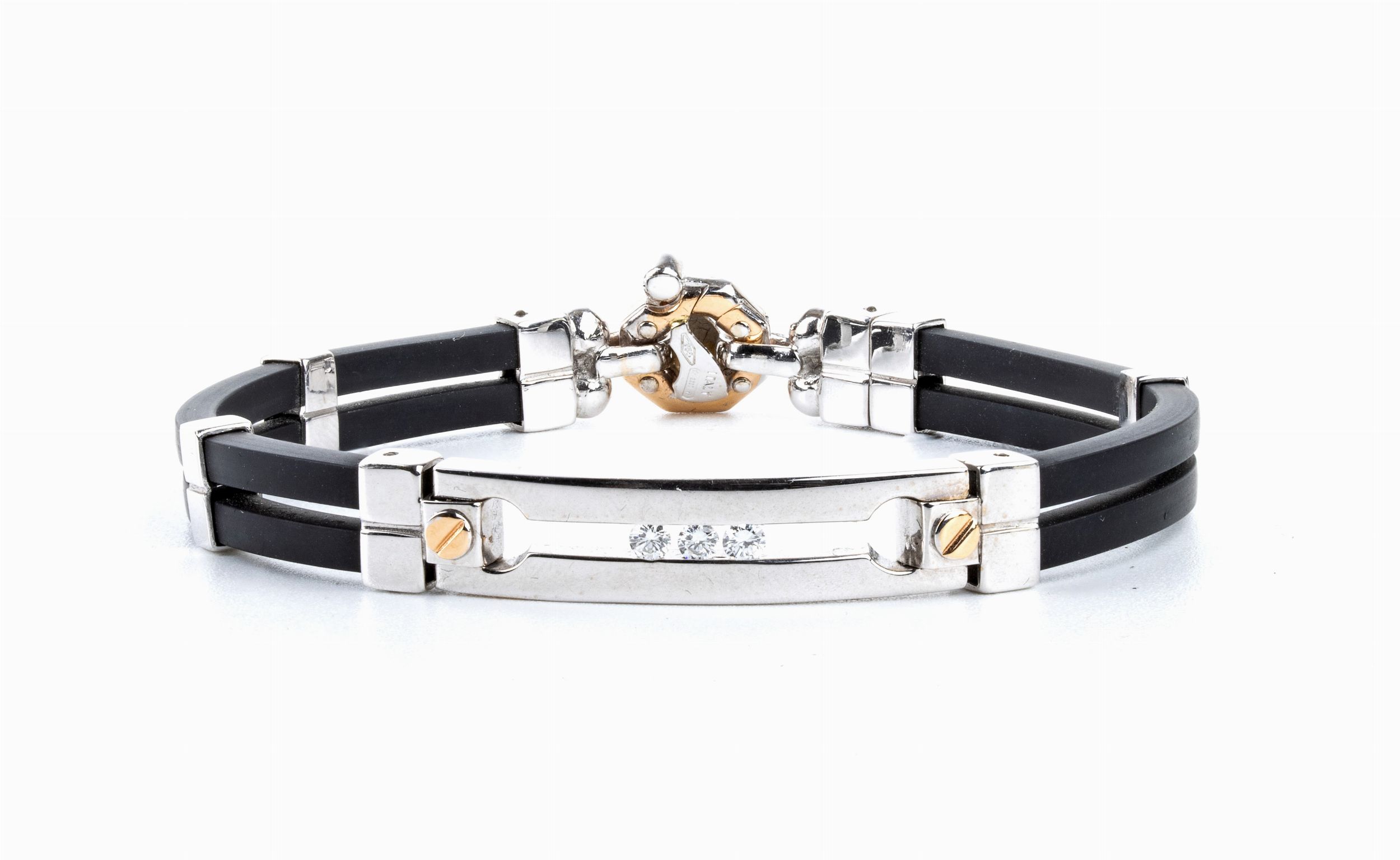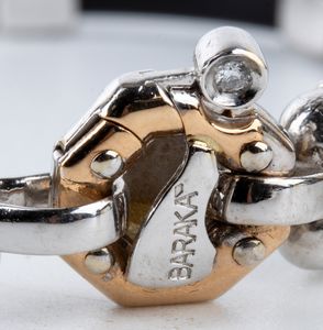 oro bianco e finiture in oro rosa, 18k. Firmato BARAKA. N. 04 diamanti di forma rotonda, taglio brillante, circa 0.23 ct: E-F; VVS. Punzonato 750 - ITALY - 2280 VI. Lunghezza 20 cm. Peso 23 gr. Stato di conservazione: ***** eccellente.