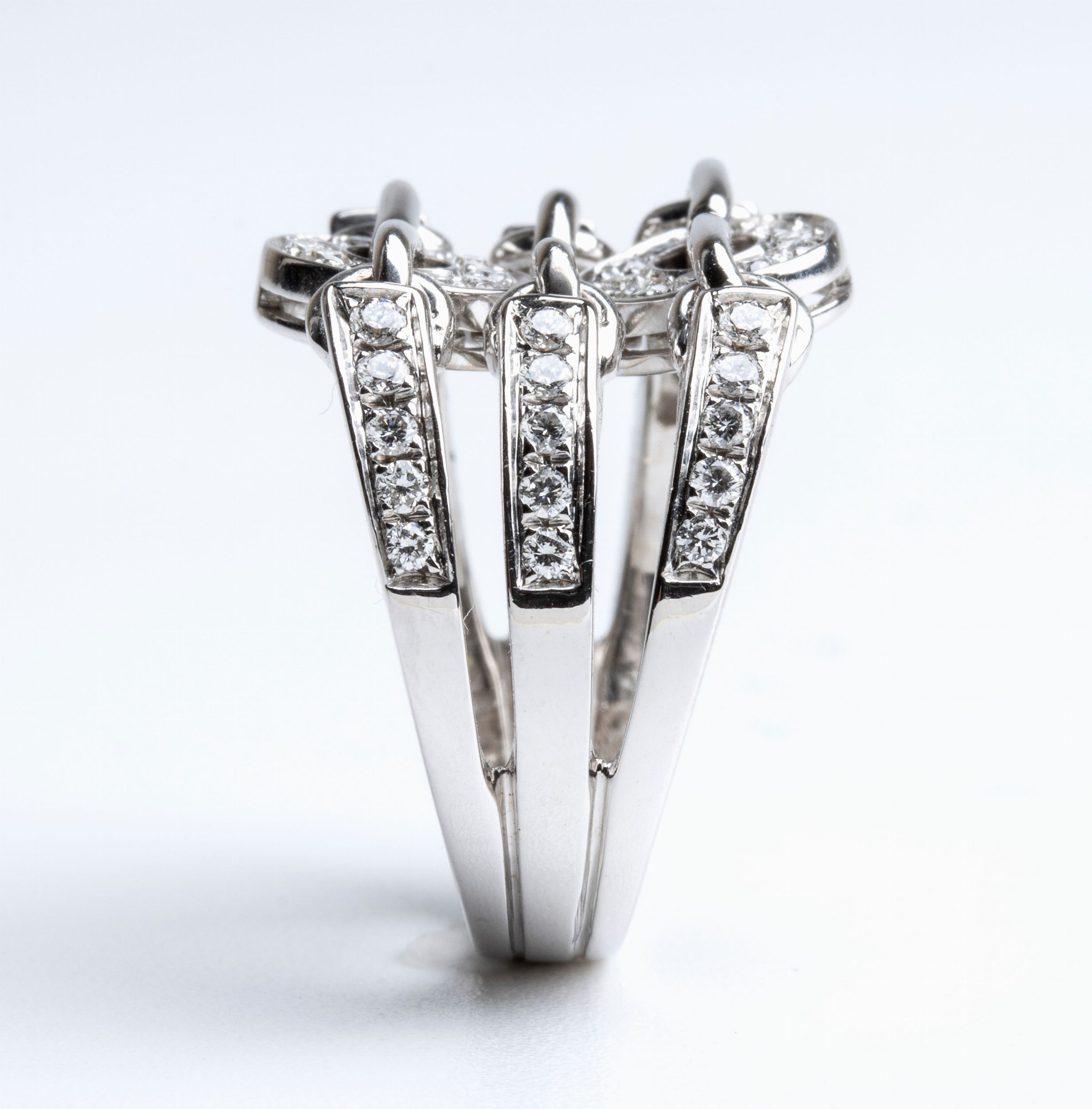 in oro bianco 18k, tre nastri con anello centrale e motivo a fibbia in diamanti.