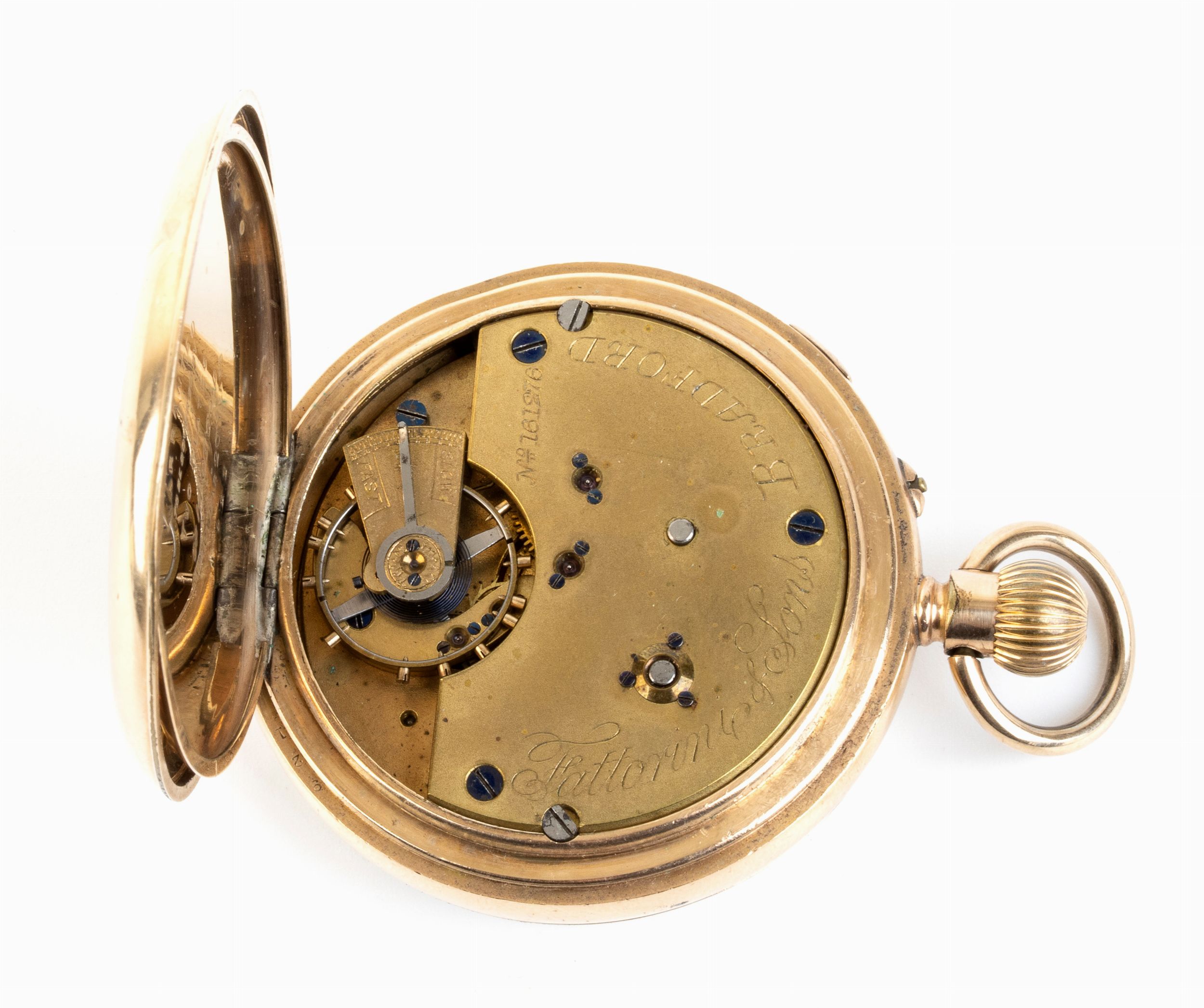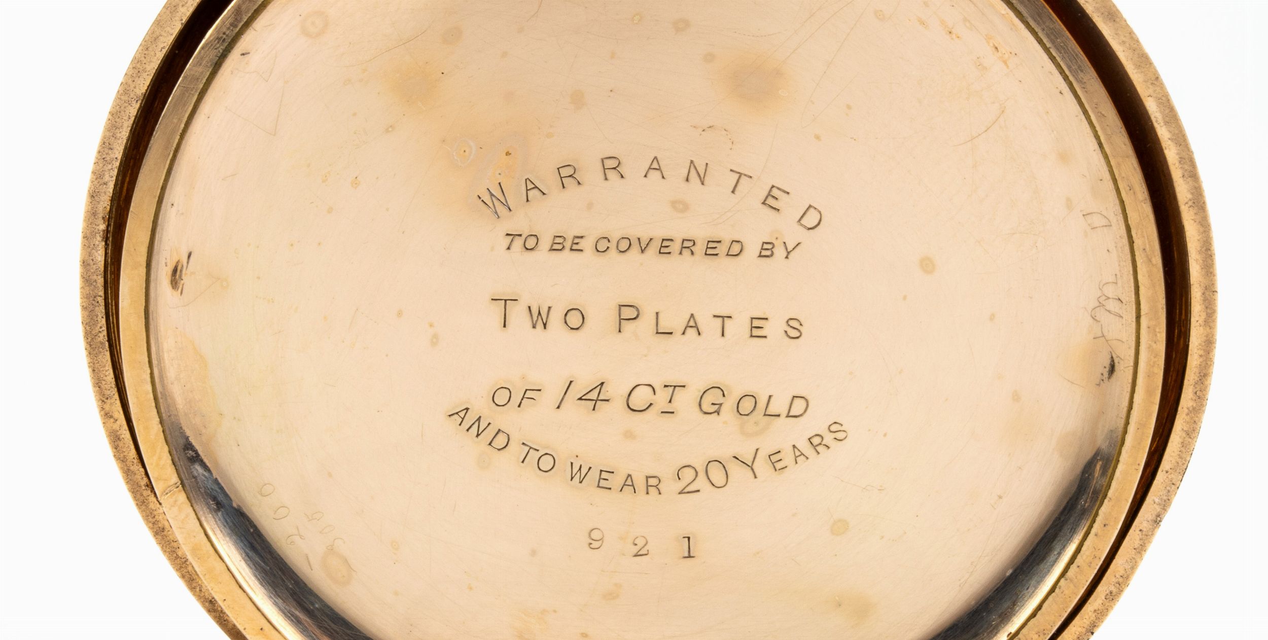 cassa in metallo dorato, quadrante in smalto bianco con numeri romani, cursore laterale per attivare e fermare il movimento. Rimessa dellora e carica a chiave.