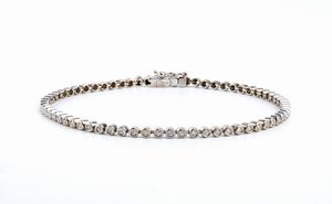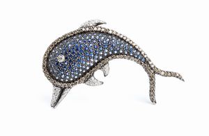 in oro bianco 18k, incastonato con pave' di zaffiri e diamanti. Diamanti di forma rotonda, taglio brillante, [..]