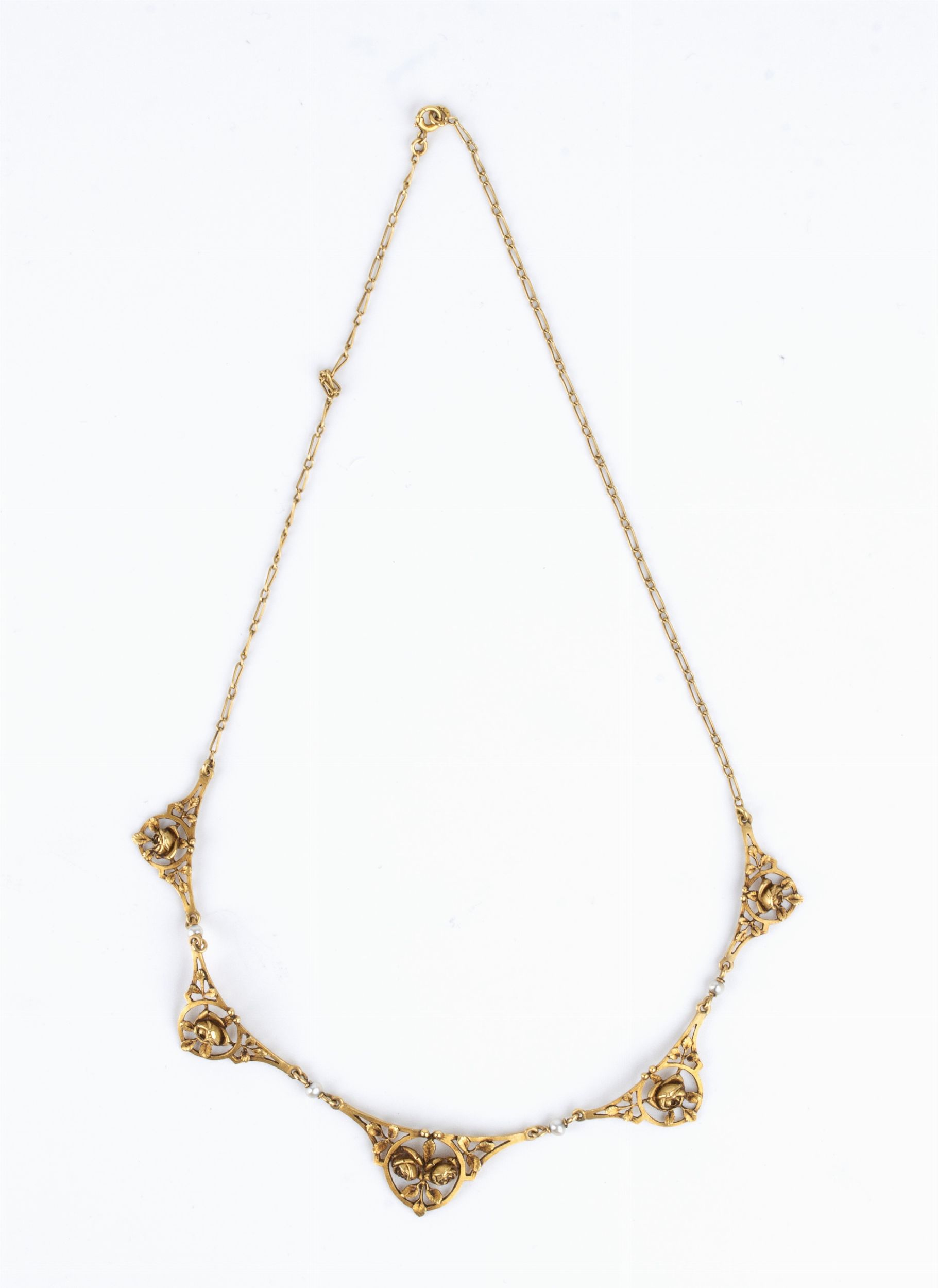 Girocollo liberty in oro con perline e motivi floreali - fine XIX secolo