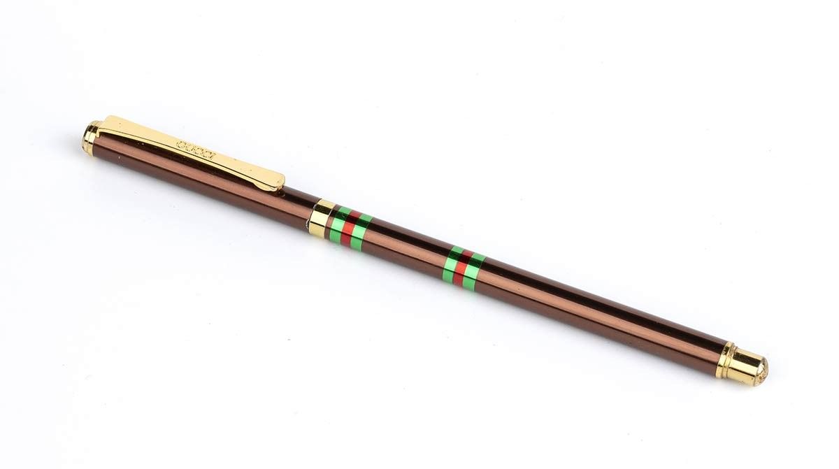 con cappuccio, in metallo smaltato e dorato. Penna sottile molto sottile in Bronzo Sherry oro.