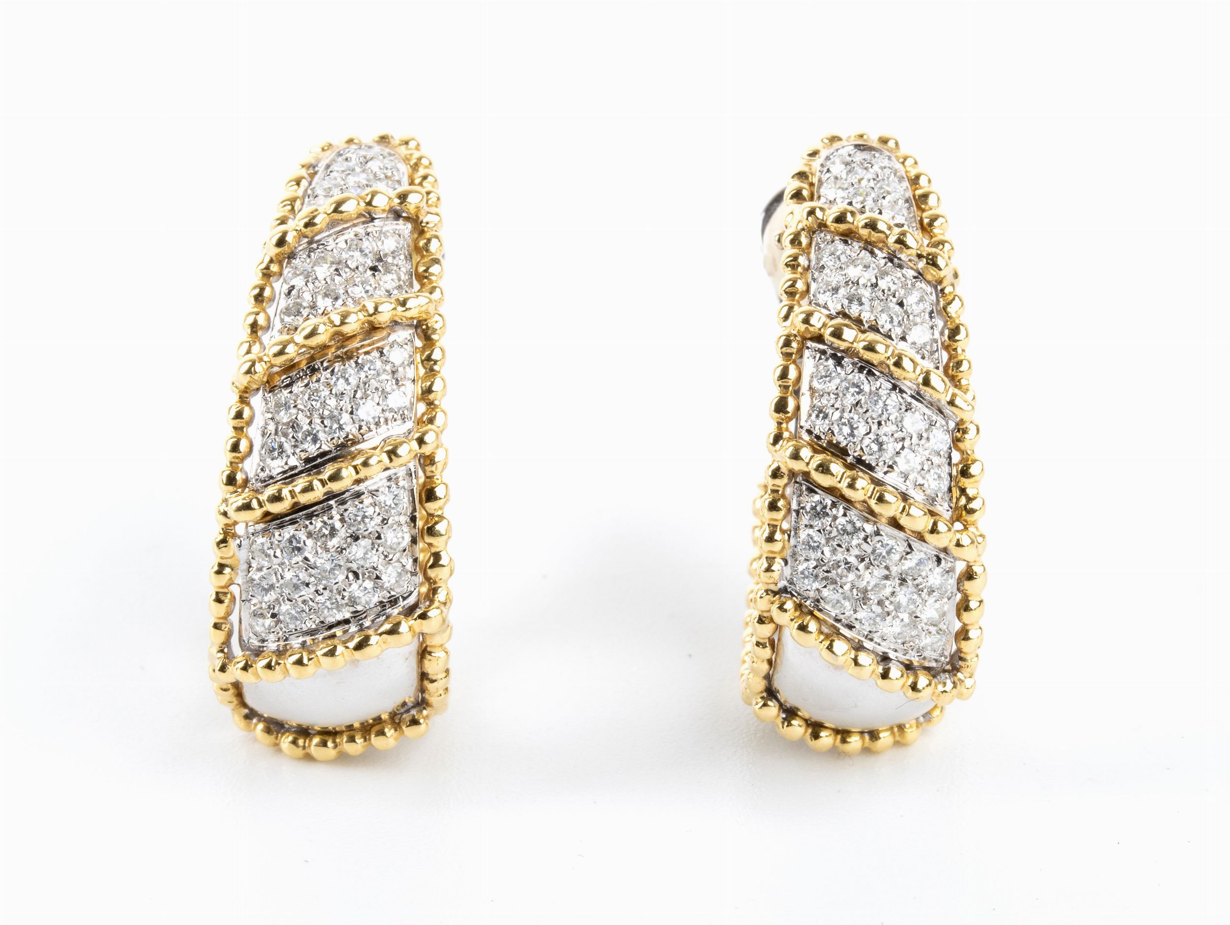 montatura in oro bianco 18k impreziosita da pavé di diamanti e da motivo a corda in oro giallo 18k.