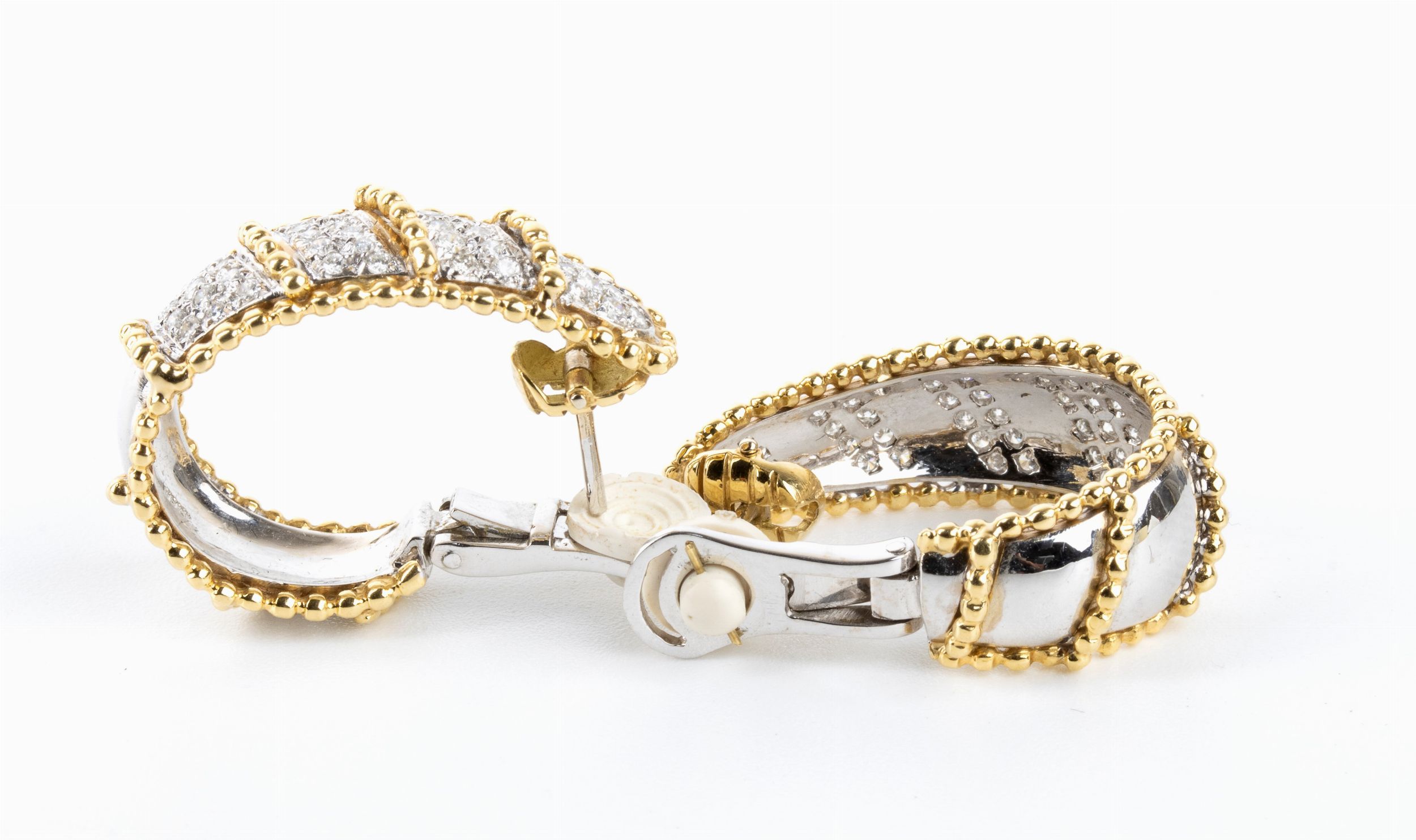 Punzonato 750 - 18k - 1032 AL. Dimensioni 2,8 x 1 cm. Peso complessivo 16,8 gr.