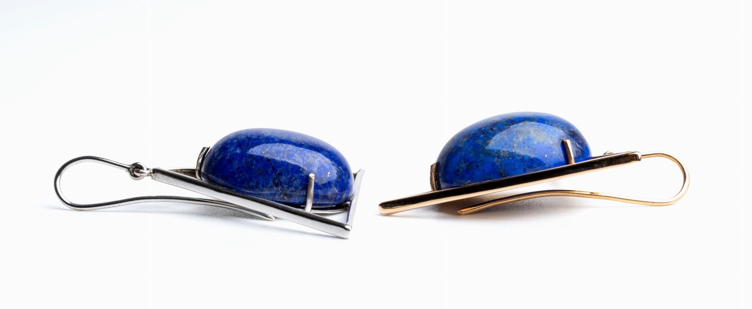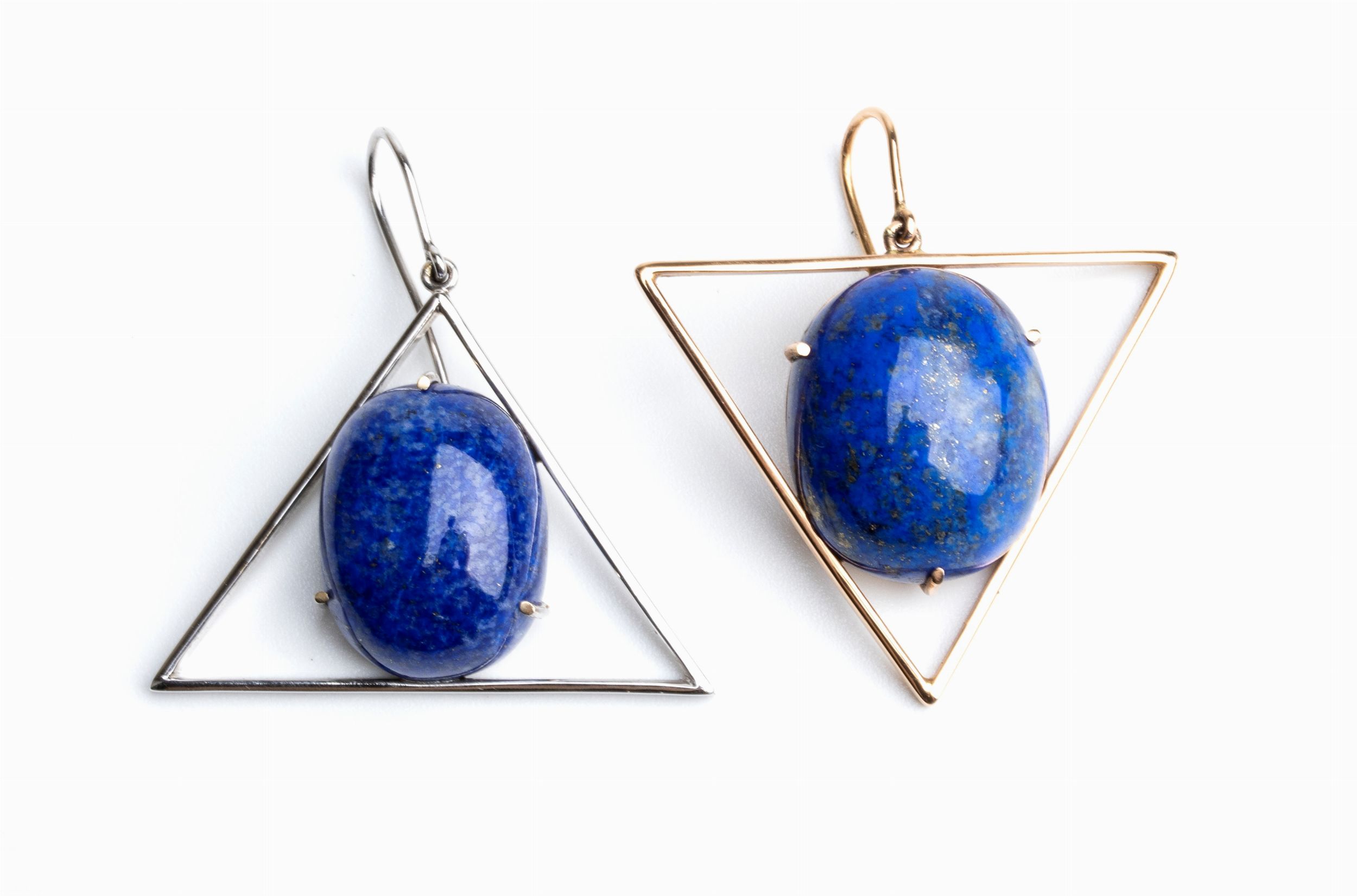 ciascuno di forma geometrica, incastonato con cabochon di lapislazzuli.
