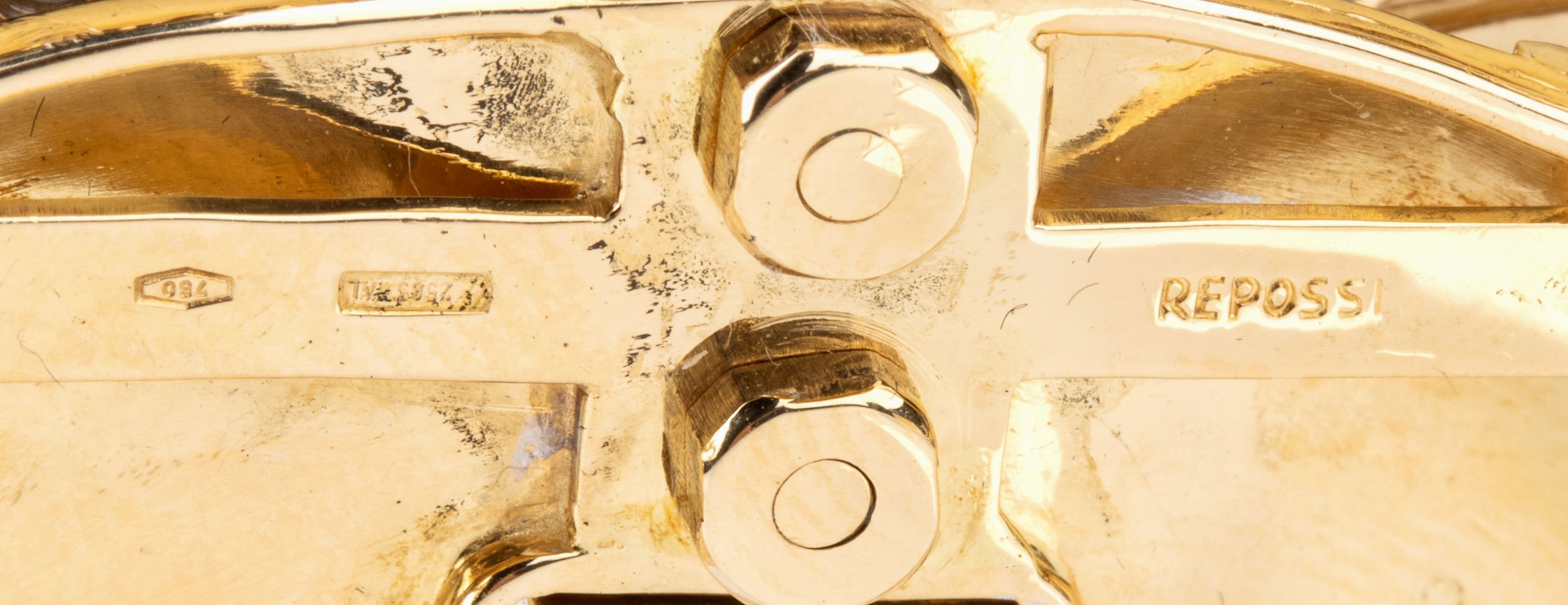 Punzonato REPOSSI - 750 - SRS - 2563 AL. Dimensioni 3.7 x 2.9 cm. Peso 28.9 gr.