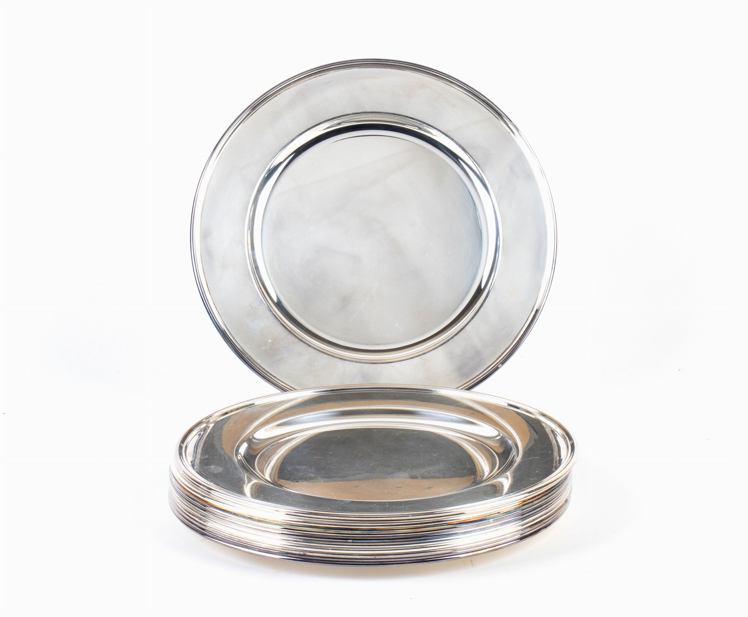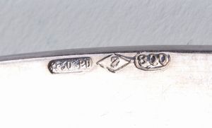 di forma circolare a falda liscia. Argento 800/1000, punzonati 800 - 30 * PD, argentiere Zaramella Padova.Diametro 30 cm. Peso totale 6120 gr circa.Stato di conservazione: **** buono.