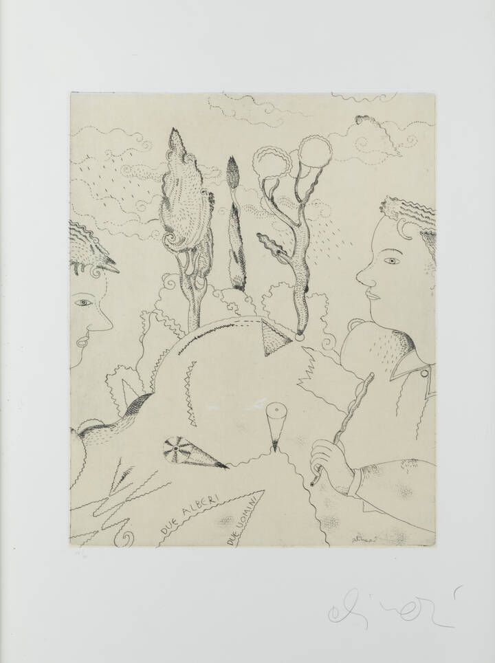 LUCA ALINARI Firenze 1943 - 2019 : Due alberi due uomini  - Asta Grafica - Associazione Nazionale - Case d'Asta italiane