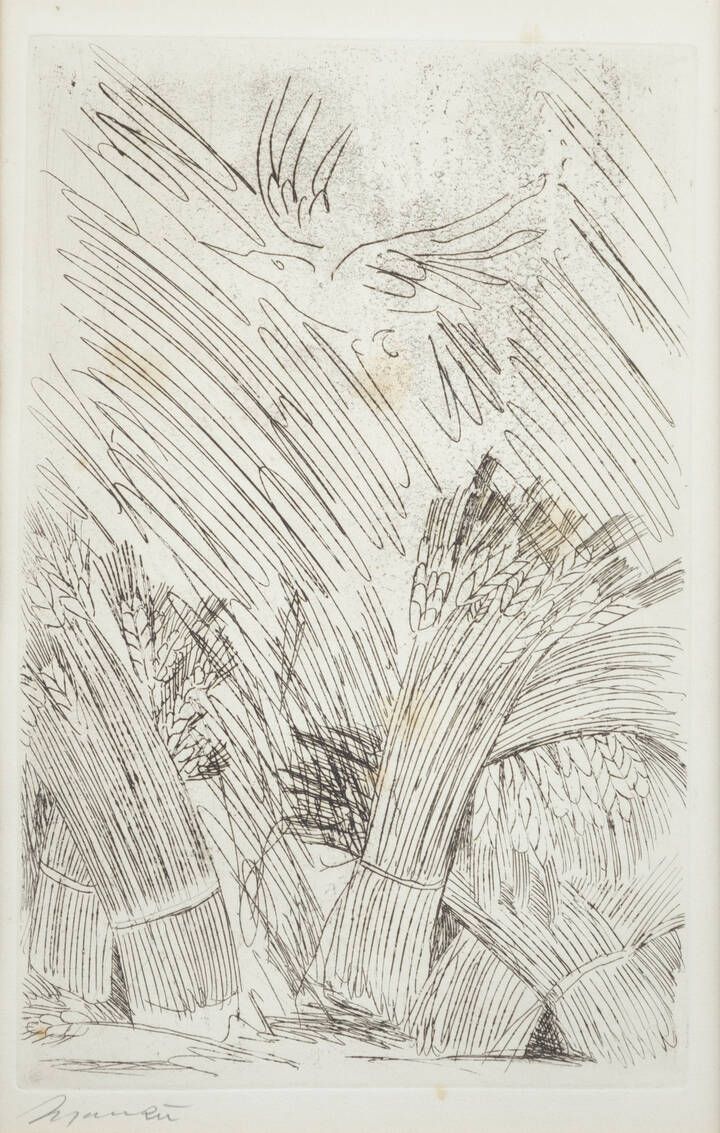 GIACOMO MANZU' Bergamo 1908 - 1991 : Fascine di grano e uccello in volo  - Asta Grafica - Associazione Nazionale - Case d'Asta italiane