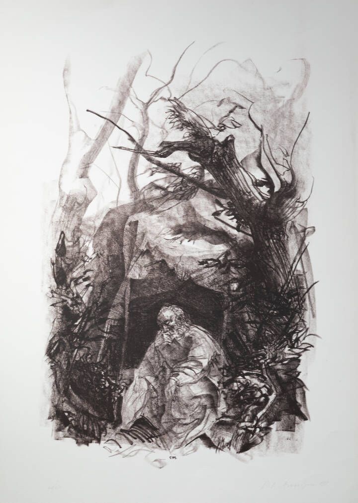 70x50 litografia es. 108/150 Opera firmata in basso a destra e numerata in basso a sinistra (a matita); sigla CM a matita dopo la firma e a stampa in basso al centro