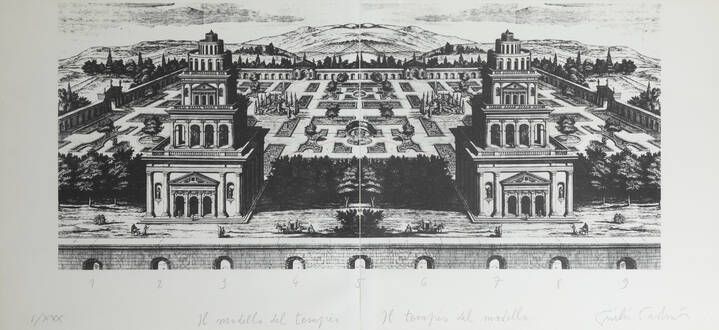 49.5x105 litografia Opera registrata presso l'Archivio Giulio Paolini Torino con n. GPE-0059 Tiratura 100 esemplari in numeri arabi e 30 in numeri romani Committente: Castello di Rivoli Rivoli (Torino) Bibl.: -Impressions graphiques. L’opera grafica 1967-1992 di Giulio Paolini Marco Noire Editore Torino 1992 cat. n. 60 ripr. (esemplare XXI/XXX); -Collectie / Collection Jeanne & Charles Vandenhove catalogo della mostra Museum Dhondt-Dhaenens Deurle Lannoo Tielt 2013 p. 159 (citato nell’elenco delle opere in collezione) ripr. col. p. 118 (esemplare p.a.);-Carte Noire. Noire Editions 1980/2015 Verlag der Buchhandlung Walther König Colonia 2016 ripr. s.p. (esemplare XVII/XXX).
