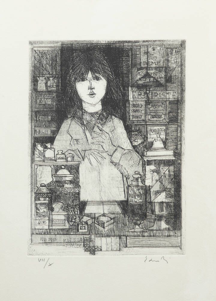 50x35 foglio 24x18 acquaforte es.VII/X Opera firmata in basso a destra e numerata in basso a sinistra (a matita sul foglio) Stamperia del Borgo Po Torino (timbro a secco nell'angolo in basso a destra del foglio)