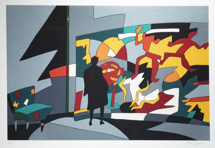 68 5x97 5 foglio 60x90 litografia Opera firmata in basso a destra e iscritta A. P. in basso a sinistra (a matita sul foglio)